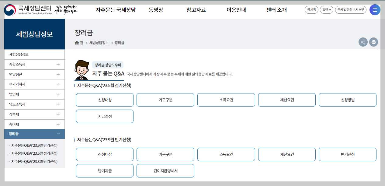 근로장려금 조건에 대해 살펴 보았는데도 본인의 상황에 맞는 답을 찾지 못하셨다면 '근로장려금 공식Q&A' 사이트를 이용하시면 됩니다. 각 상황별 근로장려금 조건 확인에 대해서 법률기준에 따라 설명해 두었기 때문에 자신의 상황에 맞는 키워드를 클릭하시면 상세한 설명을 확인할 수 있습니다.