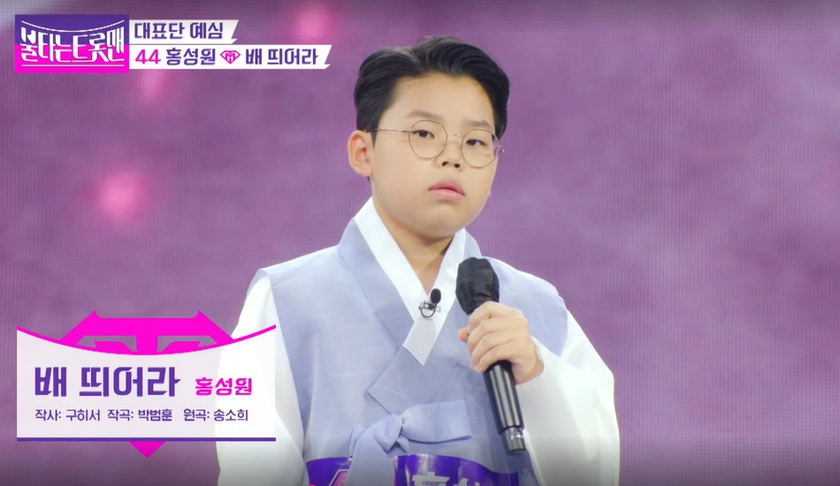 44번의 홍성원은 초등 5학년인데 한복을 입고 나왔더라구요. 명창 처럼 뻗어나가는 소리가 시원하고 막힘이 없는데다가 어린데도 한서린 감정을 적당히 잘 표현해 내는 것을 보고 감탄을 금치 못했죠. 역시 올인으로 본선 진출했습니다.