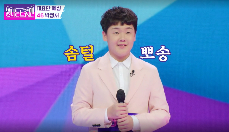 그 다음이 46번 박정서군인데요. 키가 커서 중고등학생 정도로 보였거든요. 그런데 초등 6학년 이라고 하더라구요. 말하는 목소리는 어린 아이인데 노래 부를 때 보니 동굴 저음의 어른의 소리가 나와서 반전이 있었어요. 박정서군도 13명 모두 선택받아 본선에 나가게 되었습니다.