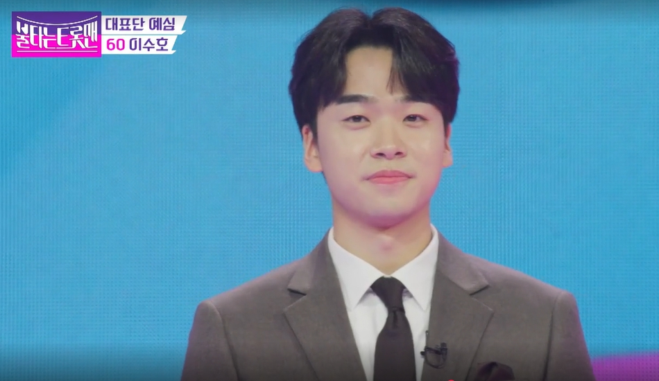 그 다음이 60번 이수호인데 어려서부터 트로트를 꿈꿨다는 것 처럼 굵은 목소리로 노래를 잘했지만 역시 약간 개성이 부족해 '불타는 트롯맨' 심사위원12명의 선택을 받게 됩니다. 아쉽게 예비합격자가 되었습니다.