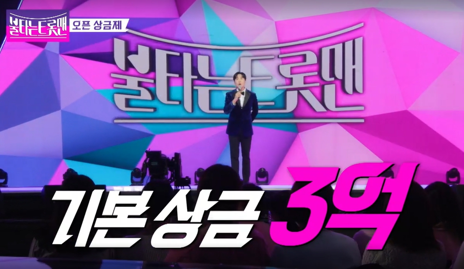 그런데 '불타는 트롯맨'은 기본 상금이 자그만치 3억이네요. 다들 입이 떡 벌어졌죠. 그러니까 3억에 결승까지의 누적상금까지 더해지니까 상금증액도 무제한이고 오픈 상금제가 되는 것이었어요. 진짜 '불타는 트롯맨'이 되고 싶겠어요.