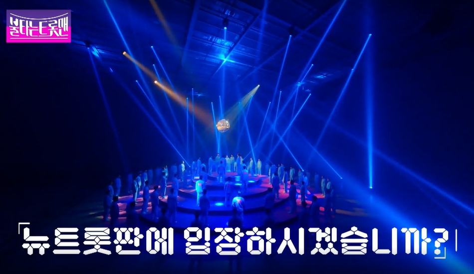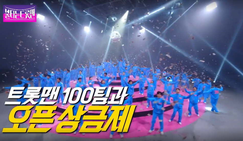 불타는 트롯맨 오프닝은 인기 드라마 '오징어 게임'을 패러디한 느낌이 많이 났는데요. 상금이 담겨져 있는 둥근 투명통이 무대 한 가운데 매달려 있고 그 안에 상금으로 보이는 현금들이 잔뜩 들어있네요. 바라보는 100명의 '불타는 트롯맨' 참가자들의 모습이 간절해 보입니다. '불타는 트롯맨' 오프닝 부터 MBN에서 신경을 많이 쓴 티가 나는 무대였던 것 같네요.