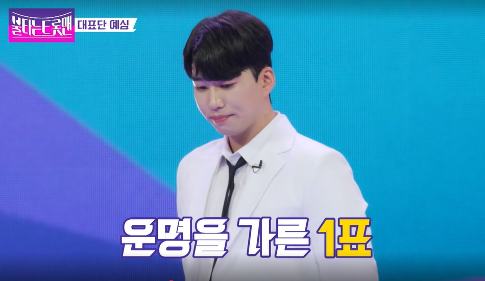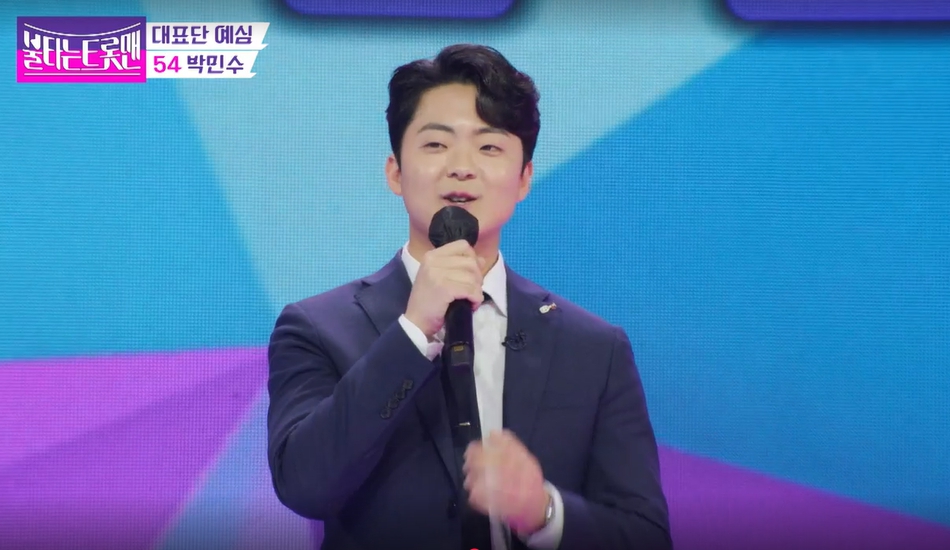 53번 김정민이 그 다음 참가자였는데요. 그도 노래를 잘하긴 하지만 자신만의 특징이 없어서 '불타는 트롯맨' 심사위원 12명의 선택을 받고 예비합격자가 됩니다.