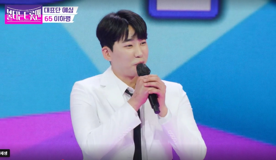 그다음 참가자는 65번 이하평입니다. 등장할 때부터 긴장감이 보였는데 물 한잔 얻어 마시고 차분하게 노래를 시작합니다. 좋은 목소리에 진지함까지 인정을 받아 '불타는 트롯맨' 심사위원 12명의 선택을 받아 예비합격자가 됩니다.
