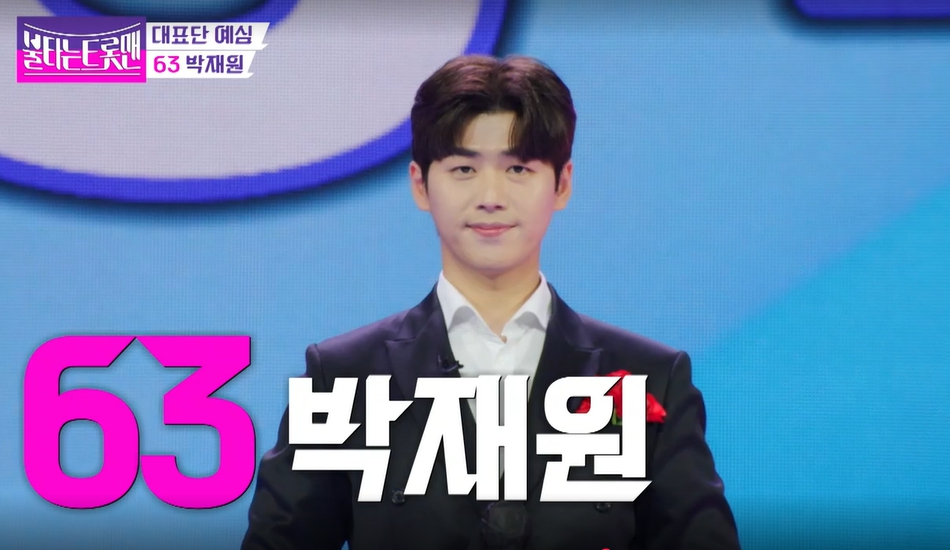 63번 박재원은 5개월차 트로트 연습생이라고 합니다. 모델 스타일로 훤칠한 인물은 좋았지만 가창력이 부족한 것이 역력하게 보여서 '불타는 트롯맨' 심사위원 5명의 선택을 받고 바로 탈락했습니다.