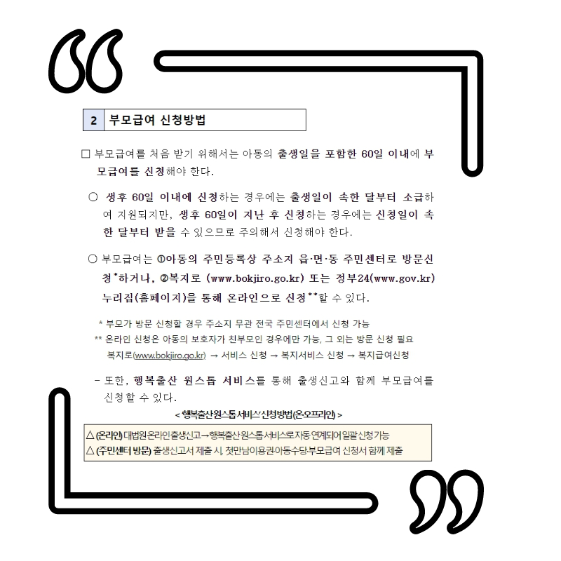 | 신청기한 언제까지 | 출생일 60일 이전 | 출생일 60일 이후 |